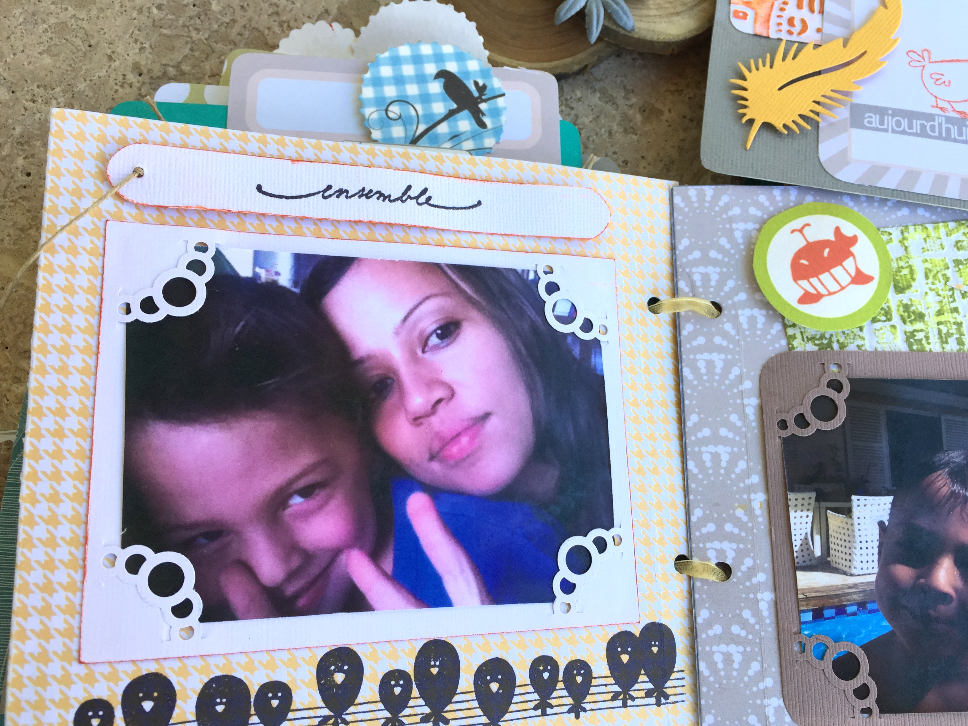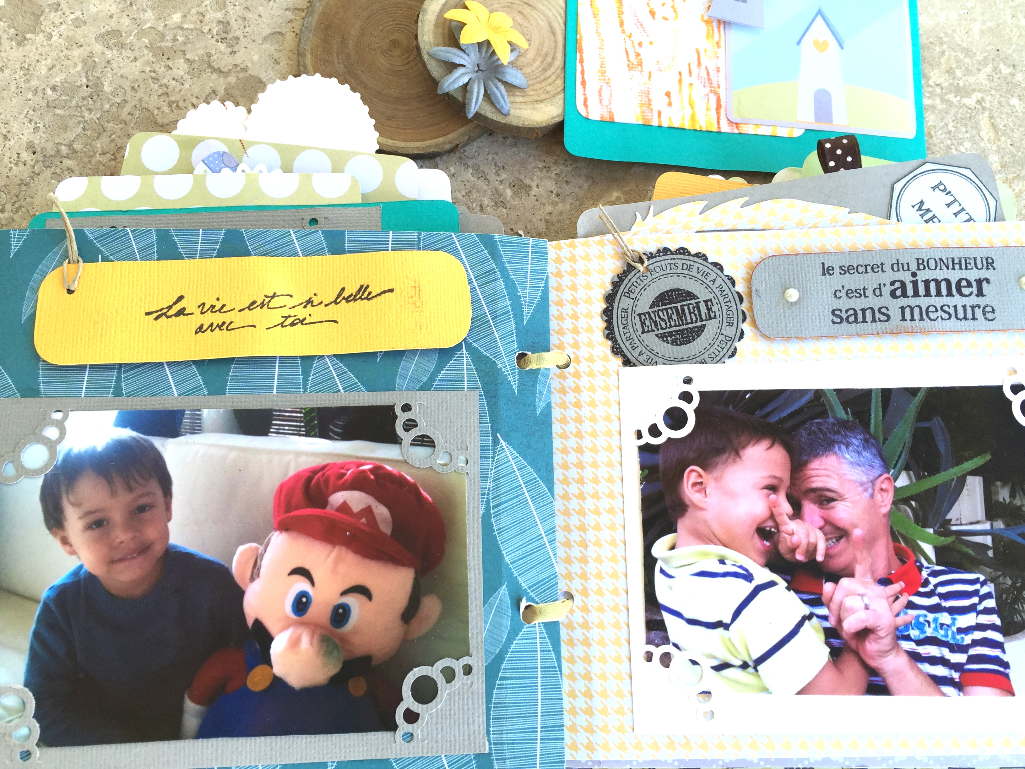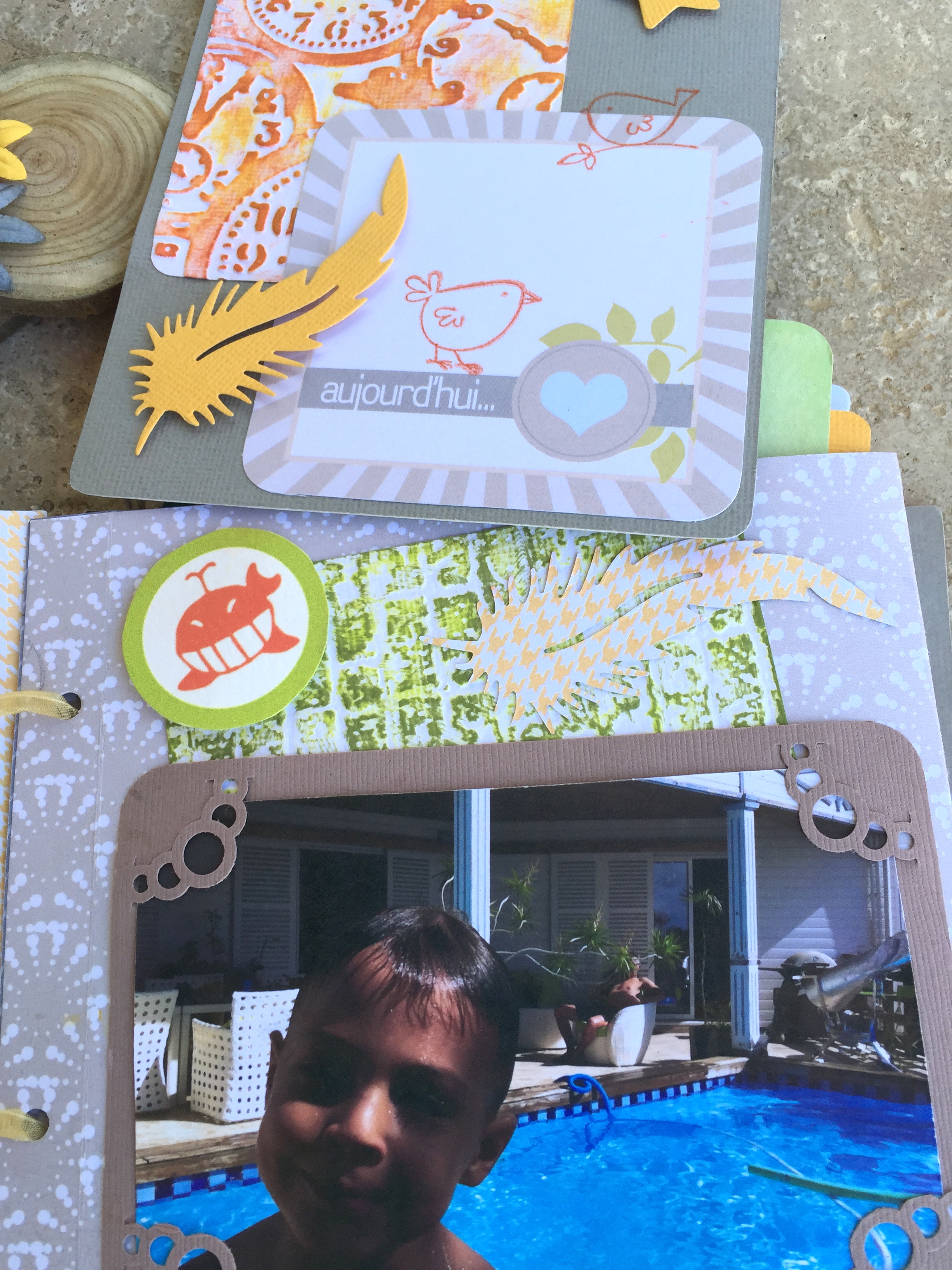 Voici encore des petits souvenirs, réalisé avec Nathalie, merci à elle. (Inspiré du magazine Esprit Scrapbboking). Collection les papiers de Pandore, Dies Sizzix…Chutes diverses…un peu d’embossage à froid..