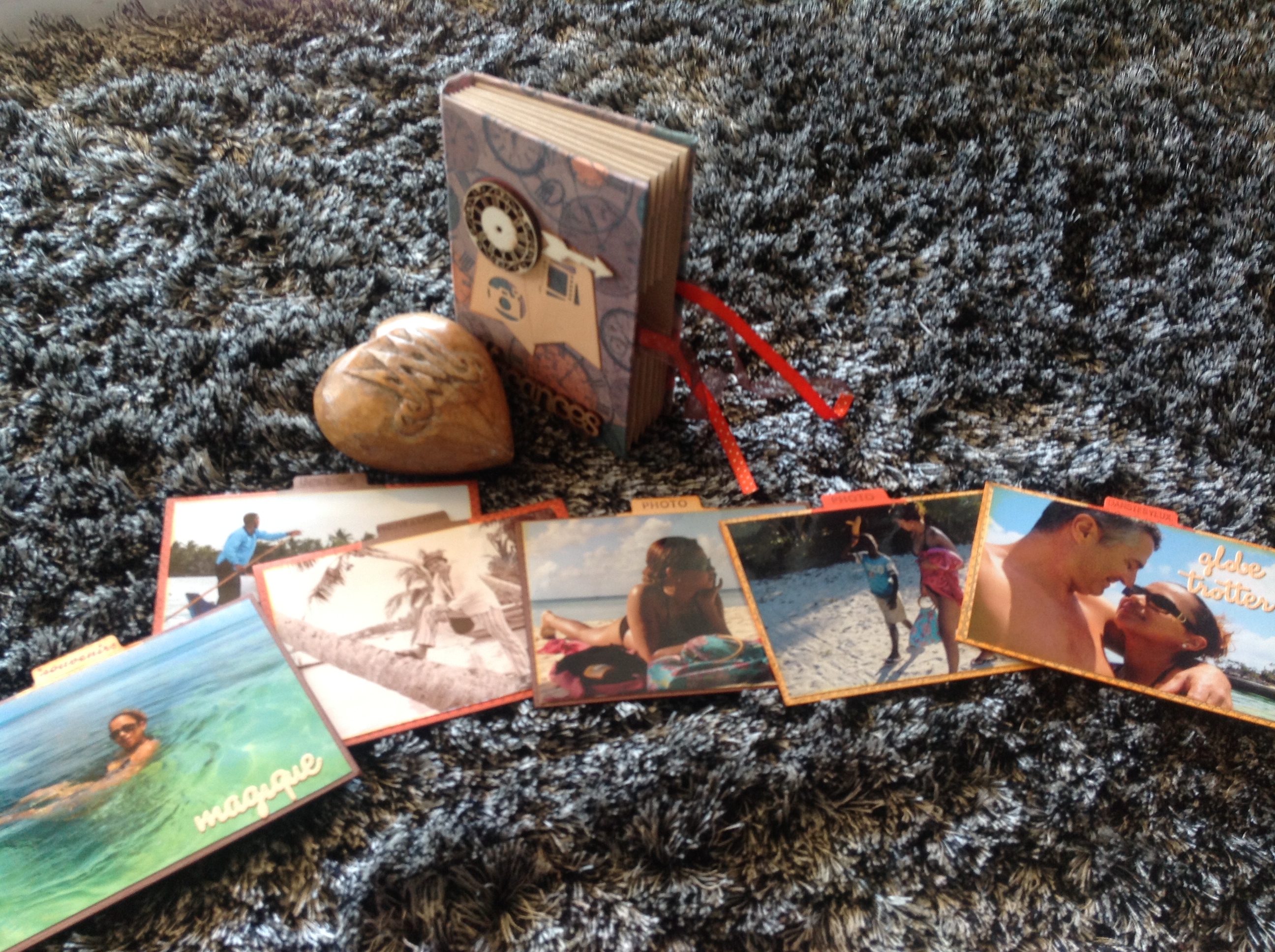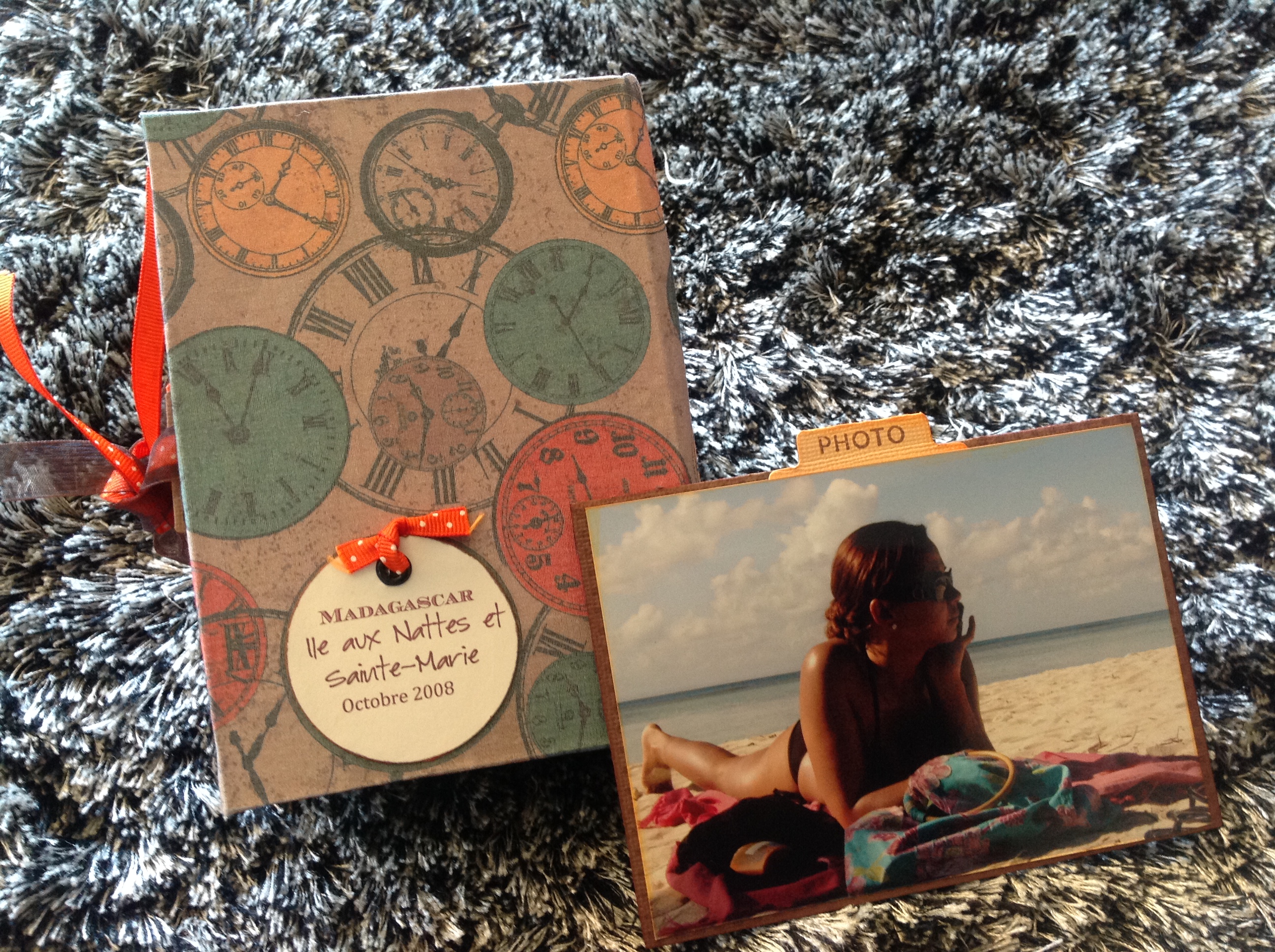 L’album vacance à madagascar, je l’aime beaucoup quand on le regarde on peut aussi voyager méme en restant dans son fauteuil, il est trés bien sa fait à la fois un album mais aussi un livre qu’on ne se lassera jamais de regarder. Les couleurs, choix du papier, le ruban et tout le reste se coordonnes trés bien ensemble. Trés bon travail, continue ….
