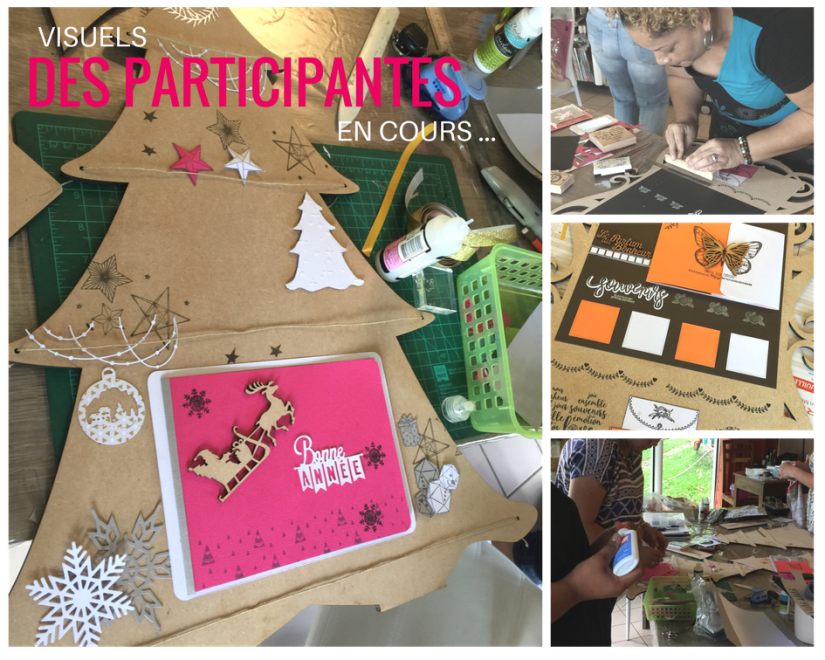 Retrouvez certains de ces produits en ligne : . CREATION ELLAFEE ILE DE LA REUNION - Sapin en bois medium 6 mm (54*58 cm environ) - Cadre en bois médium 6 mm(54*58 cm environ) - Traineau - Mot bois : "Joyeux Noel", "Le parfum du Bonheur", "Papillon Origami 1", "Papillon Origami 2" (voir tout les Créations ELLAFEE) . TAMPON BOIS, CLEAR ET DIES FLORILEGES DESIGN (Voir tout Florilèges Design) . DIES LIME CITRON (Voir tout Lime Citron) . TAMPON CLEAR KESI ART(Voir tout Kési Art)