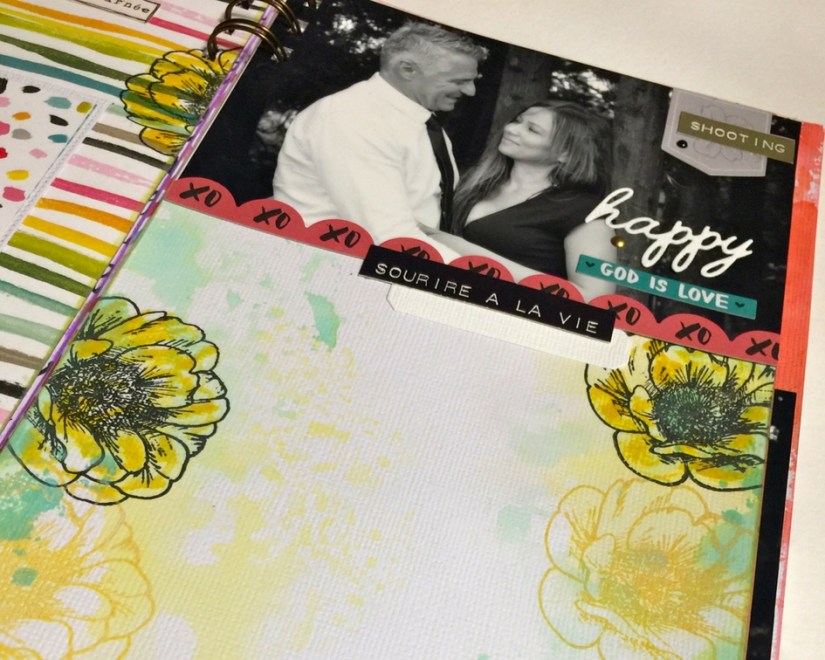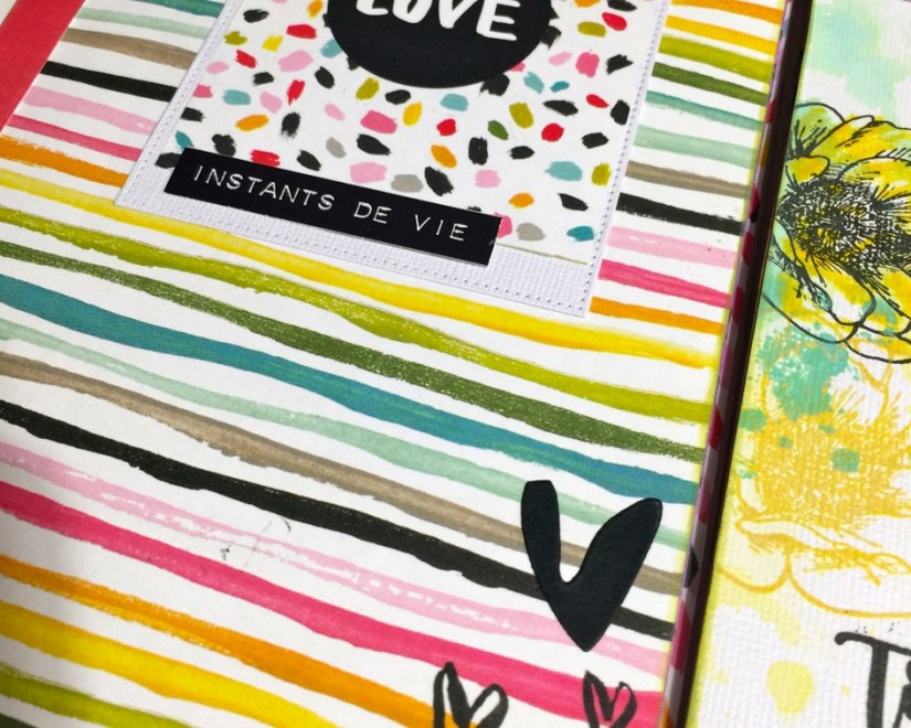 Ici, vous reconnaissez les tampons clears des « Ateliers de Karine, aquarellés avec les Néocolors,