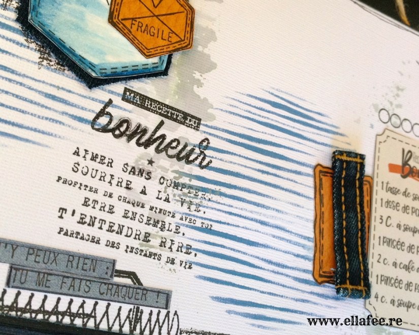 - Tampons bois, Clear, et Dies divers dont l’Encre et l’Image en grosse partie, ainsi que FD, les ateliers de Karine et Lime Citron.