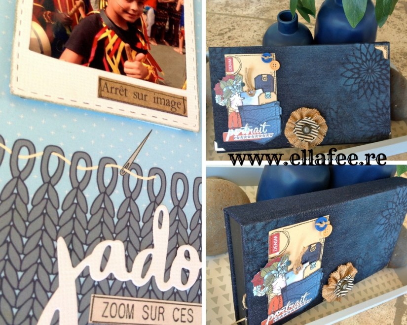 La structure de l’album a été réalisée à partir de carton bois 3 mm, avec une reliure en tissus Jean. Nous obtiendrons ainsi un album aux dimensions de 15*26,5 cm, où nous mettrons 13 photos aux formats différents.
