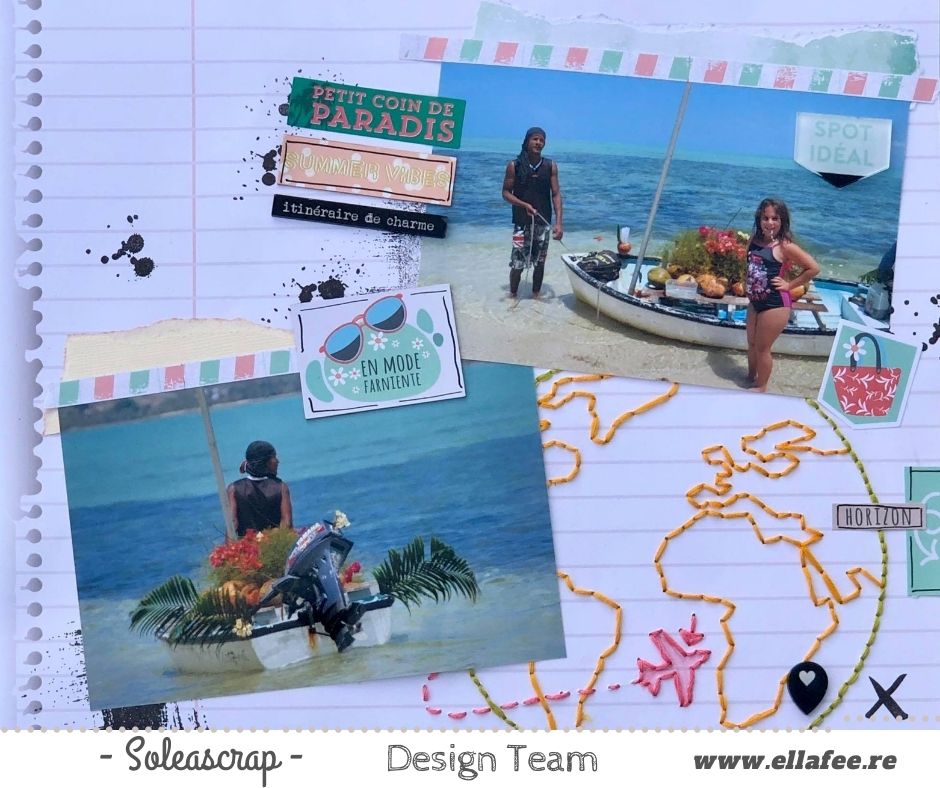 Avec ses deux pages, elle nous emmène entre terre et mer, avec les superbes pochoirs broderie des Ateliers de Karine…