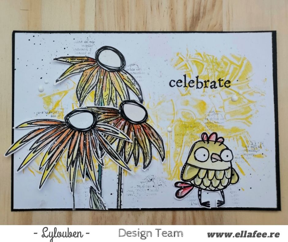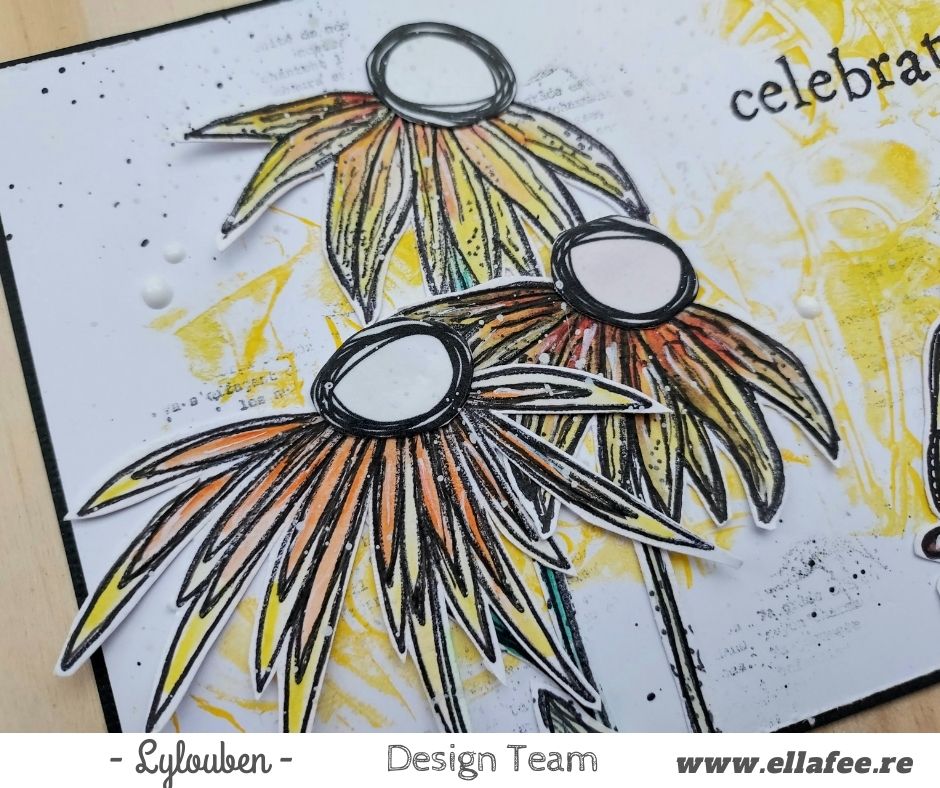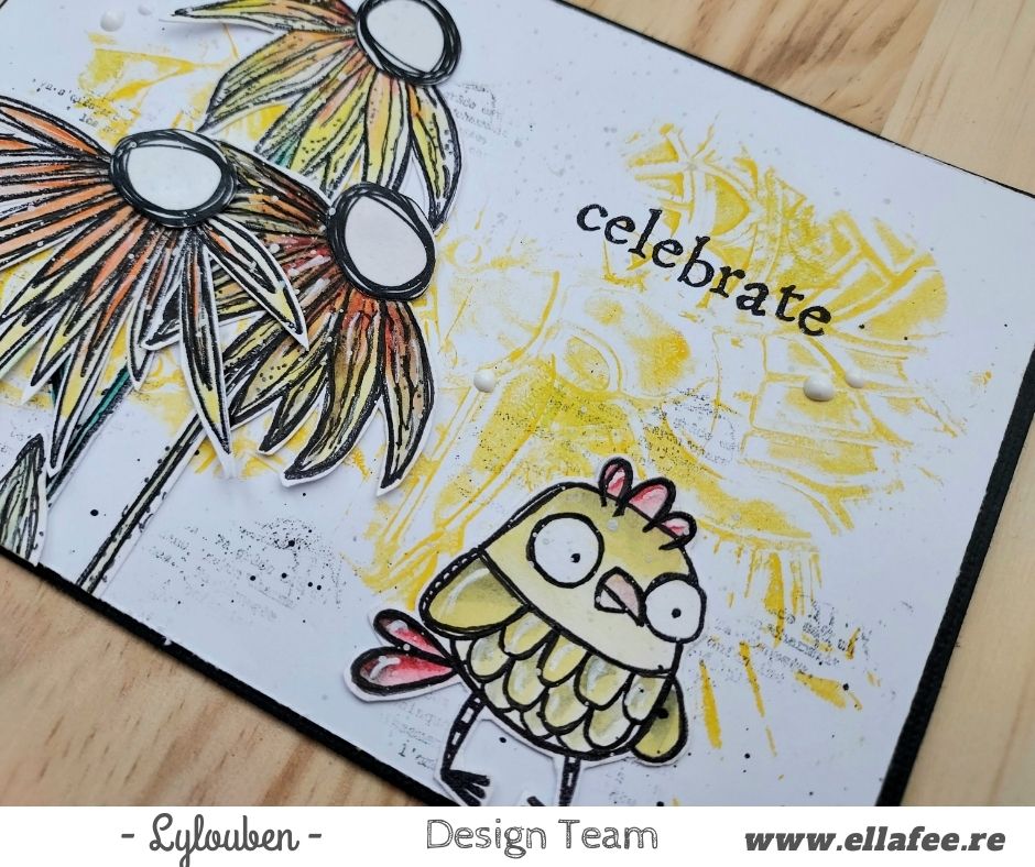 Pour réaliser son fond elle a utilisé sa mini Gel presse, combiné à de l’acrylique, elle vous montre tout sur