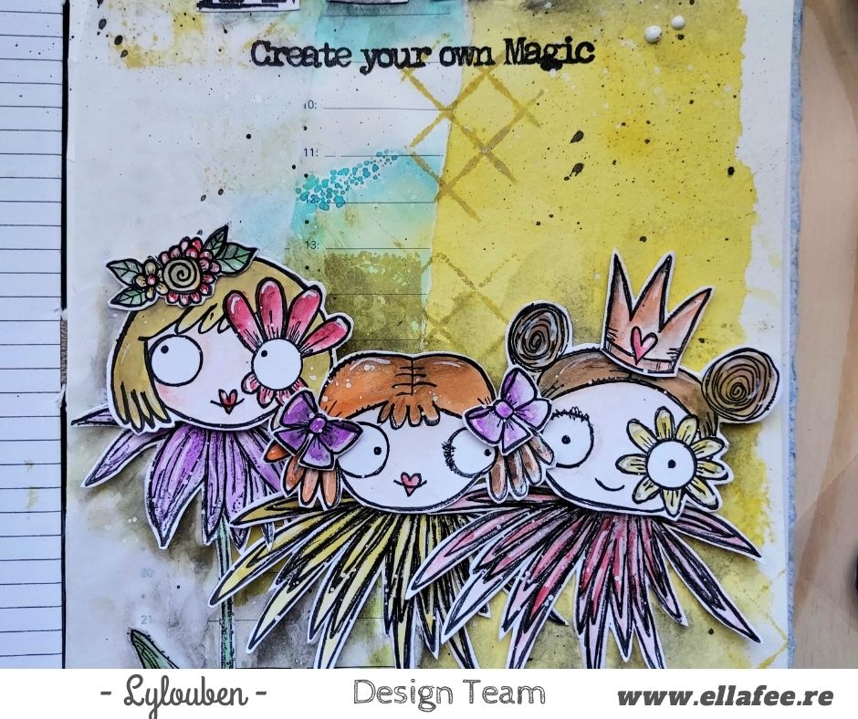 Aujourd’hui, c’est avec Lylouben que nous découvrons une nouvelle page de Art Journal avec les produits de la boutique, à l’honneur toujours les superbes tampons clear de la marque AALL&CREATE,