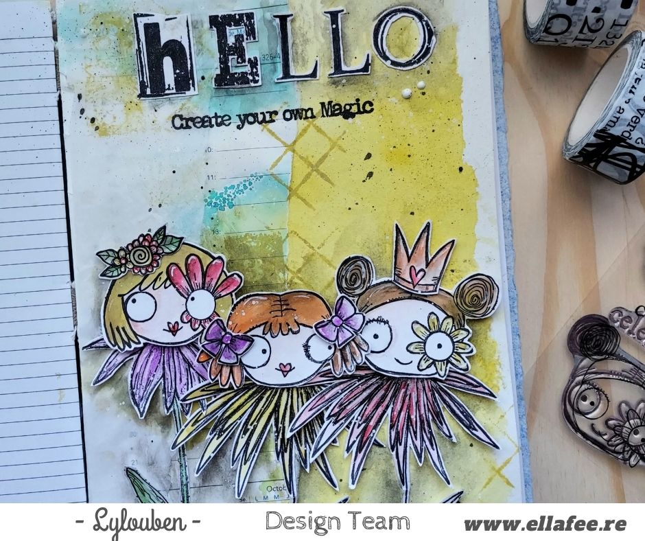 Aujourd’hui, c’est avec Lylouben que nous découvrons une nouvelle page de Art Journal avec les produits de la boutique, à l’honneur toujours les superbes tampons clear de la marque AALL&CREATE,