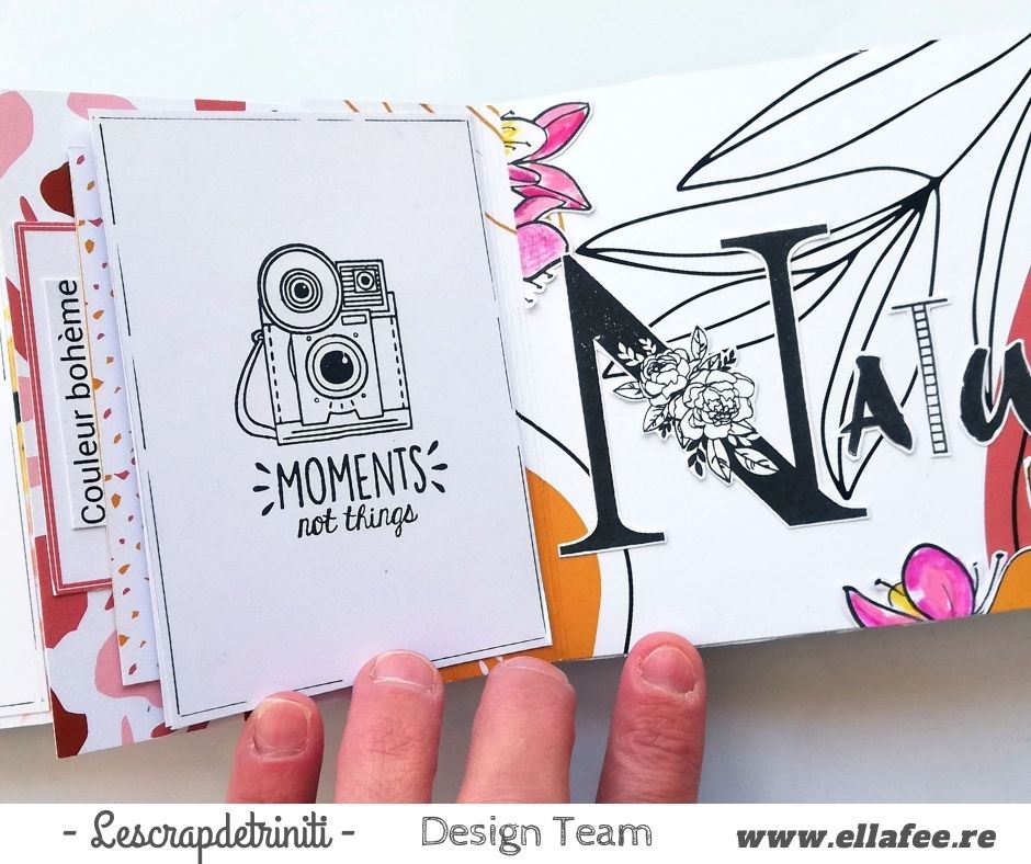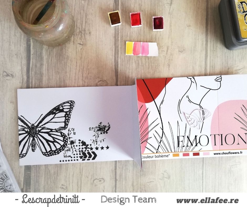 Cette fois elle nous propose un superbe mini album, le choix s’est porté sur la collection BOHEME de Chou@Flowers, on aime son interprétation, son mini est magnifique, beau mélange entre le clean et la patouille…en bonus elle vous a prévu un petit tutoriel ainsi qu’une vidéo 😜