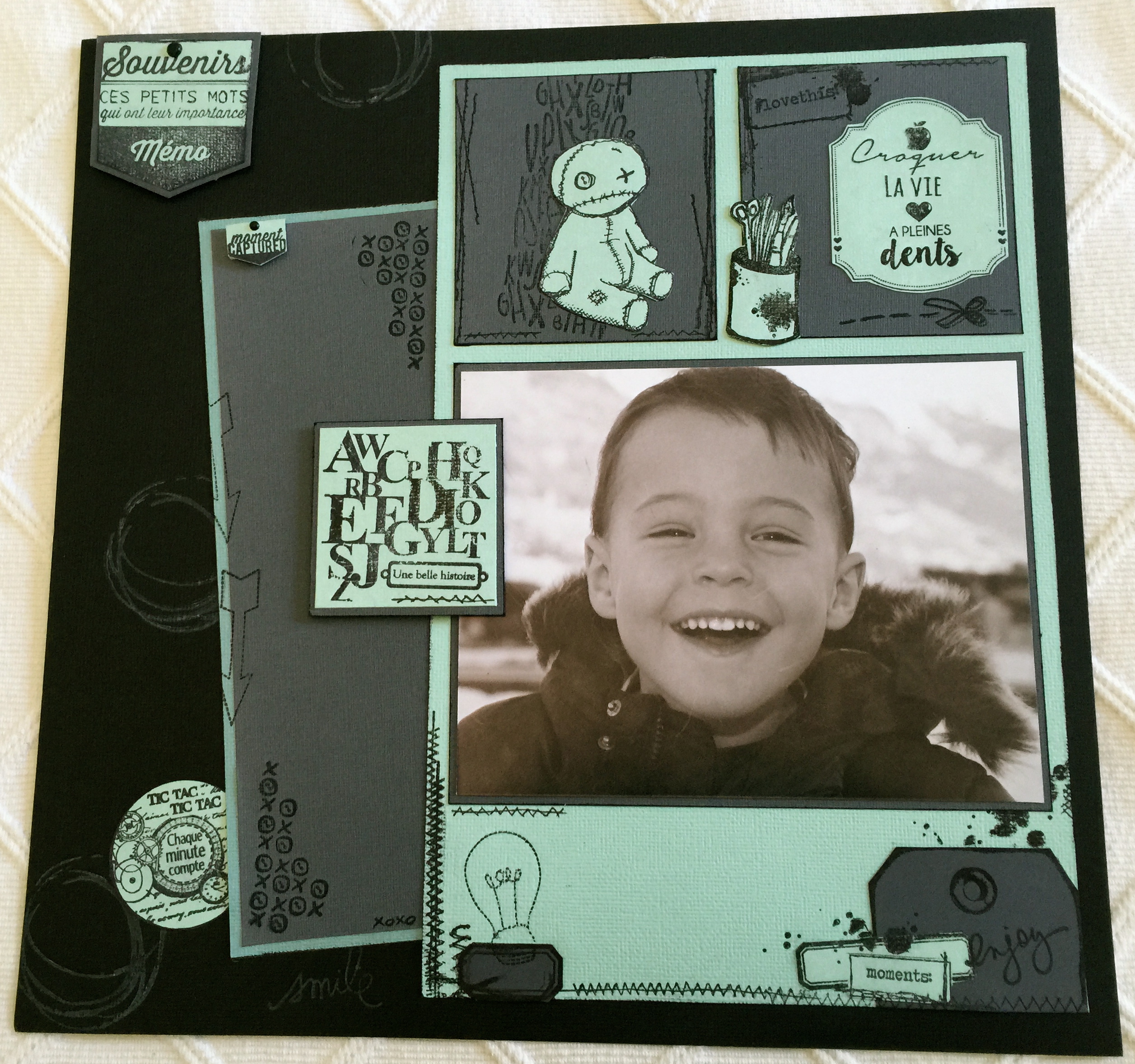 Lors de cette rencontre Ascaf avec Patricia Dellepi, nous avons réalisé un petit mini sous la houlette de Marie-Pierre Olivier, un grand merci à elles…Un petit clin d’oeil à Graziella Carpin de l’association KREOLISCRAP, pour nous avoir déniché la salle de Sainte Suzanne,